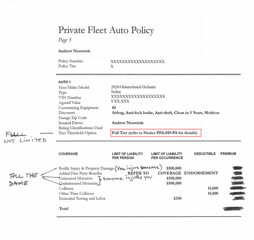Auto-Insurance Best Practices: please make sure that you are Full Tort please make sure you have uninsured (UM) and underinsured (UIM) insurance coverage for yourself and your family. I can drone on about why or what it is, but take my advice. Regular old bodily injury insures if you hit someone else. Why would you protect your family less …